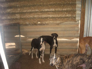 Aquí os mando fotos de los galgos, esto es el cuento de nunca acabar, y encima Carmen hoy ha estado presente que están planeando el criar galgos puros de los que recogen. También ha visto el corte del cuello del nuevo galgo blanco y negro que ha cogido el gitanito, lo está curando con vetadine y dice que es de una pelea.